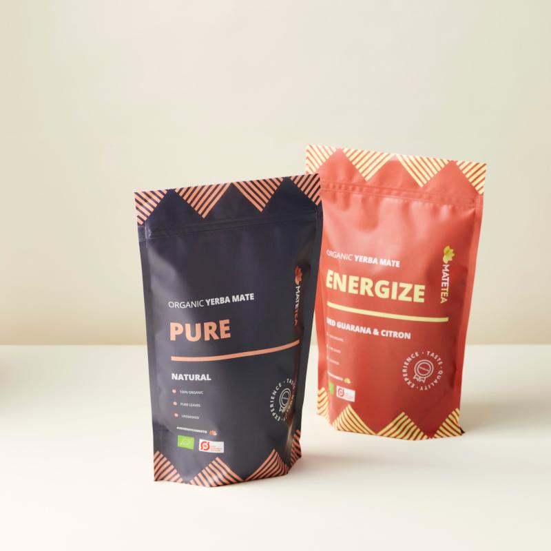 Die Matetea-Varianten, die Yerba Mate mit Aromen und anderen leckeren Zutaten kombinieren, werden von einem unserer Partner zusammengestellt, der sich auf Bio-Lebensmittel spezialisiert hat. Dieser Partner ist auch für das Verpacken aller Matetea-Produkte verantwortlich, bevor sie in unserem Lager in Dänemark ankommen.